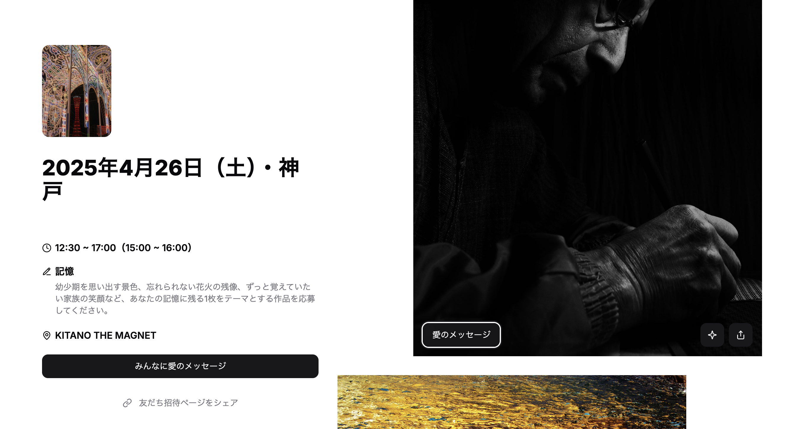 photo poster project(フォトポスタープロジェクト)では「愛のメッセージ」というシステムをご用意しています。展示したクリエイターたちに対して、メッセージを送ることができます。展示会場で自分の名前を書くことができる記帳と似ていますね。そのため、展示クリエイター以外のお客様も、会場で愛のメッセージを送ることができるようになっています。